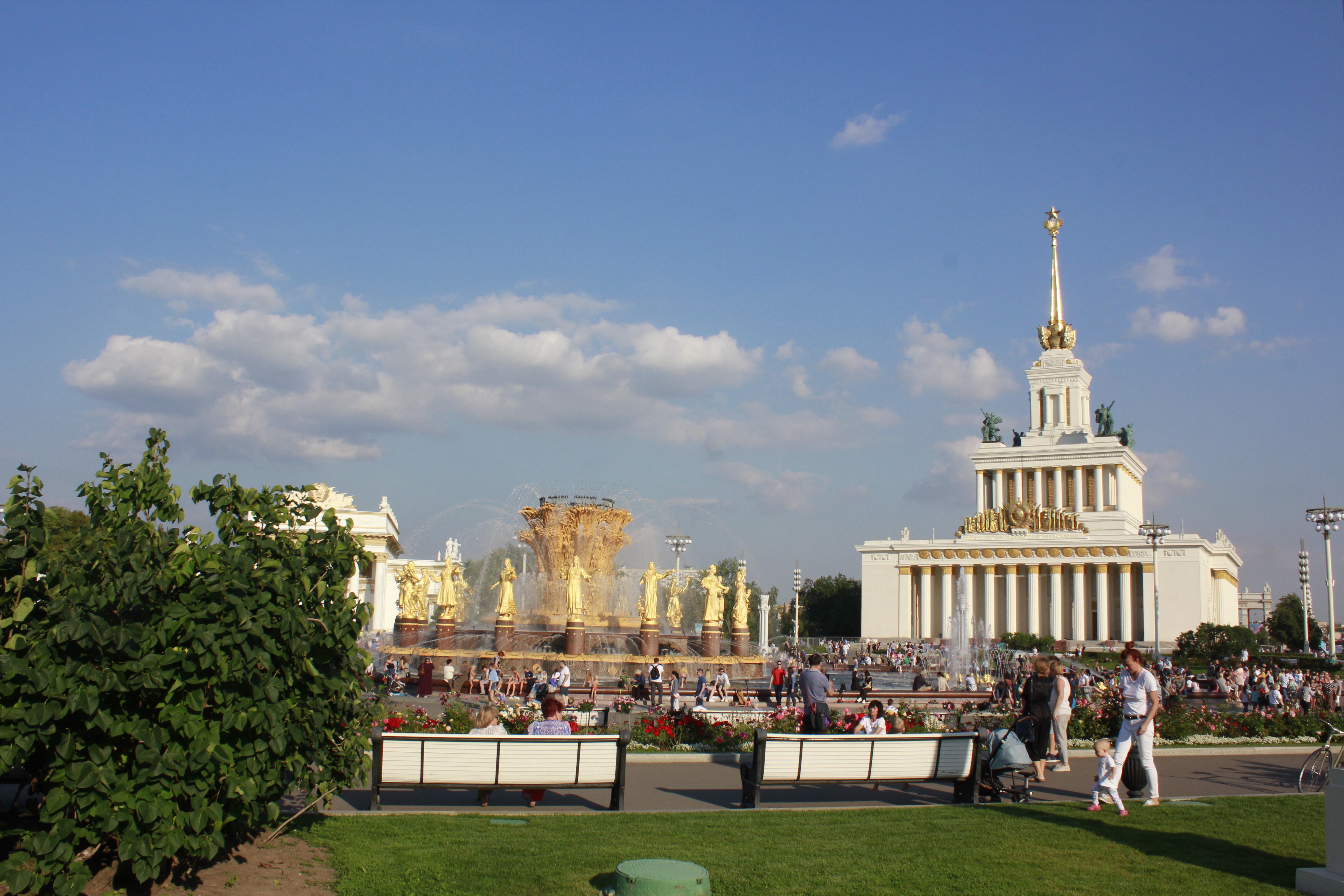 Nachmittags sind wir mit der Metro in den Park der Errungenschaften der Sowjetrepubliken Volkswirtschaft (ВДНХ) . Dort gibt es viele Pavillons, welche verschiedene Teilrepubliken repräsentieren. Ich fand das etwas …gaga und wie Disneyland des Sozialismus.