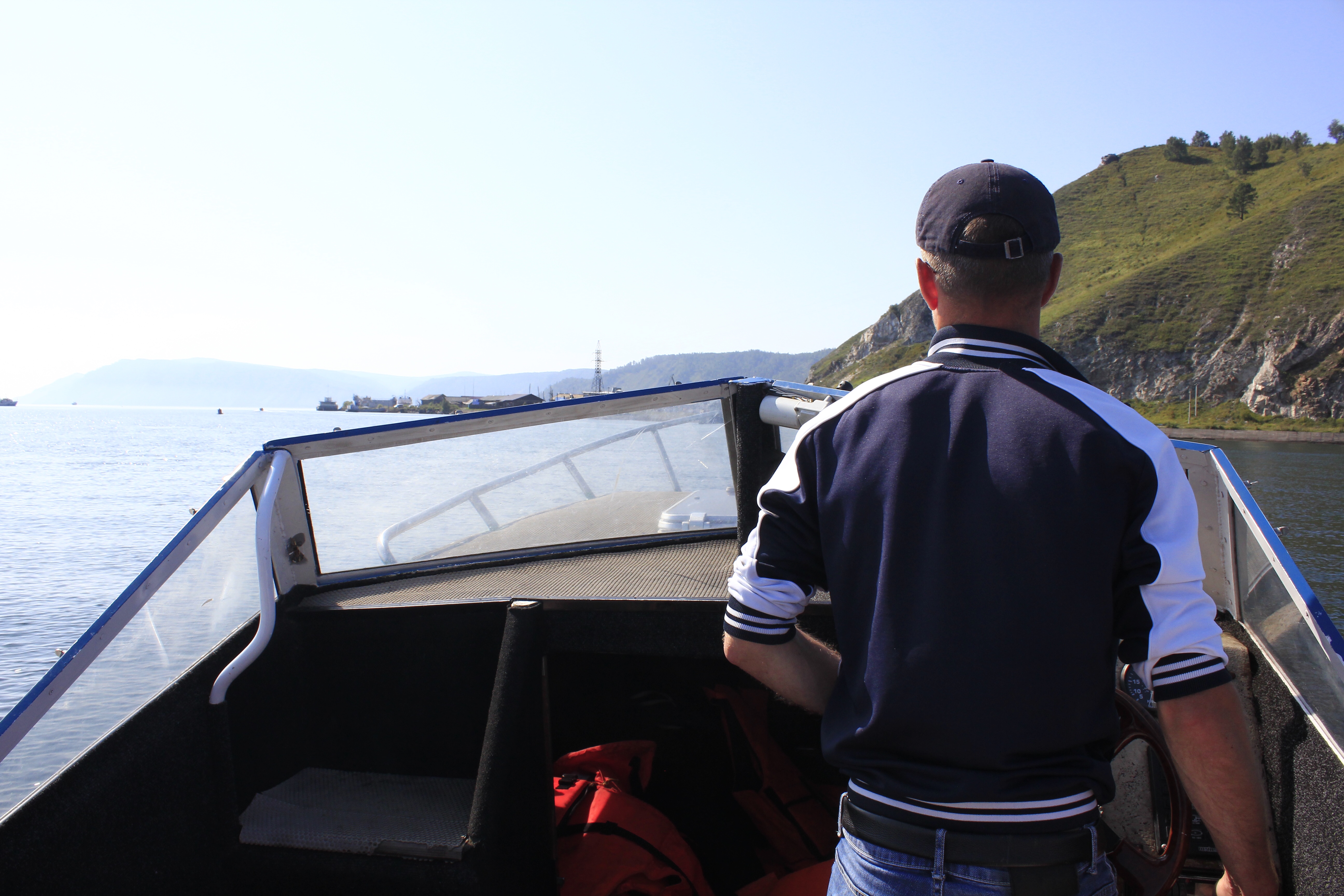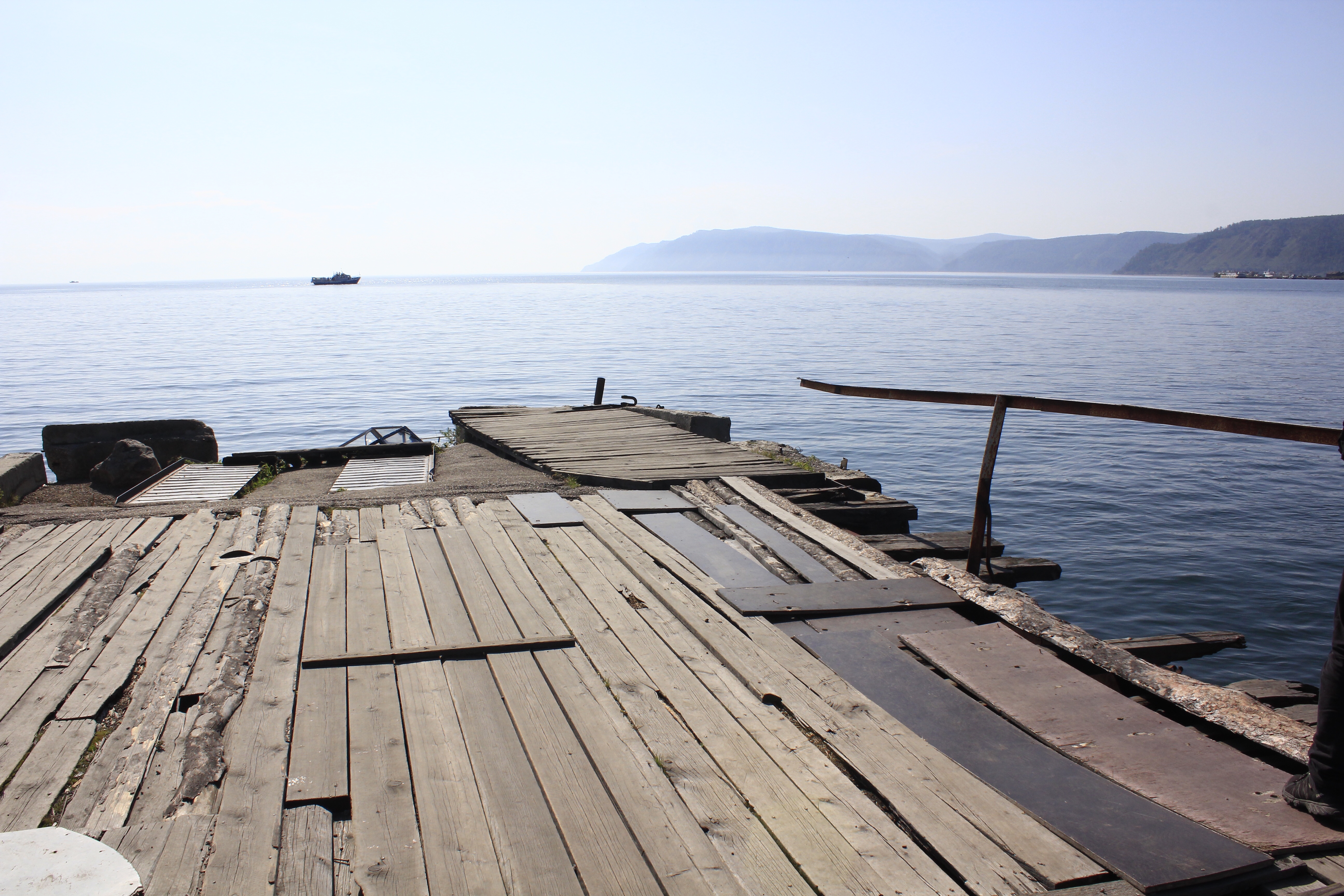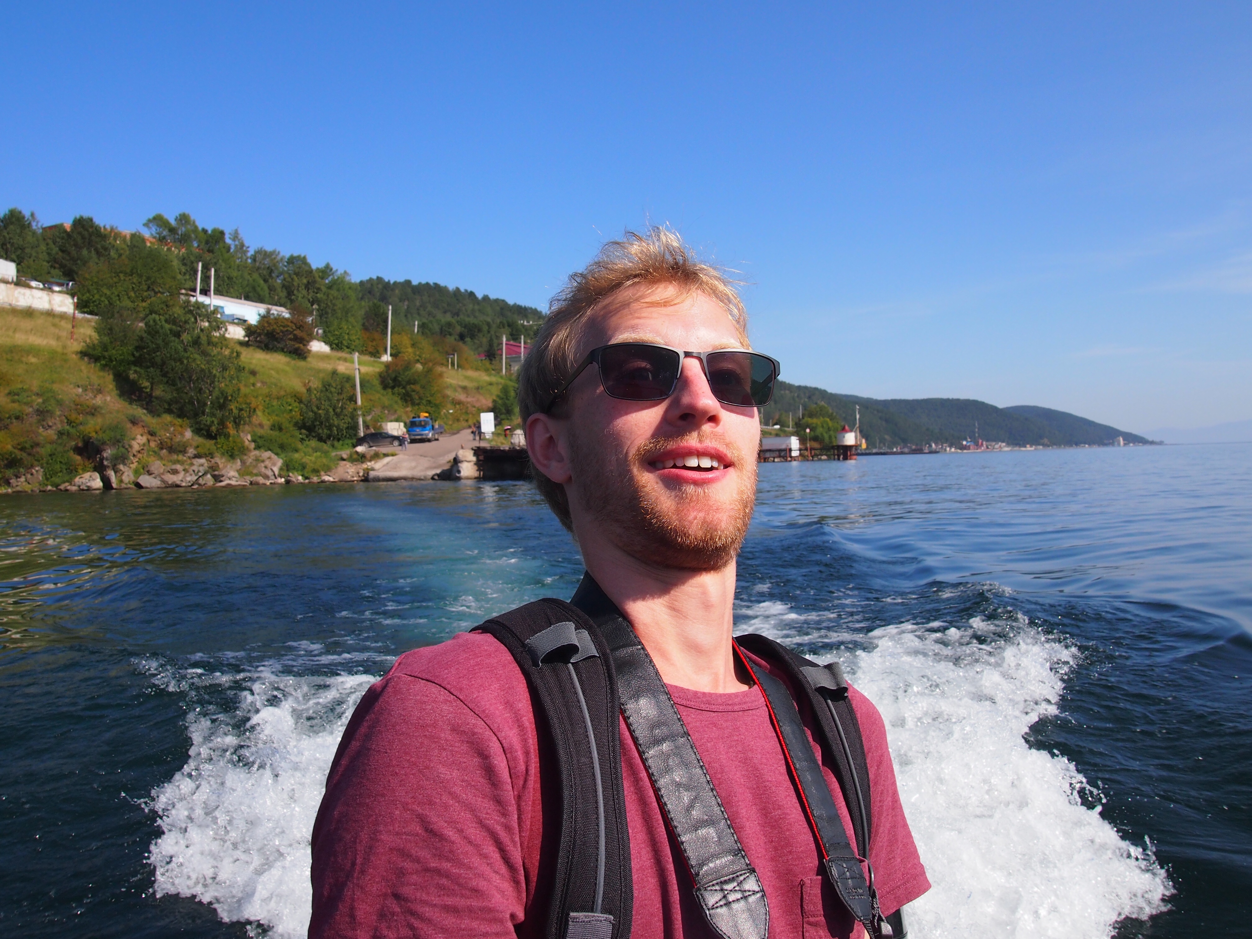 Alle lebendig unten angekommen, machten wir uns wieder in Richtung Seeufer auf mit dem Ziel die Fähre nach Port Baikal auf der anderen Angaraseite zu nehmen. Diese fuhr leider aber nicht zeitlich passend, was aber kein Problem darstellen sollte, denn am Anleger wartete schon ein Privatboot was uns fix nach Port Baikal brachte.