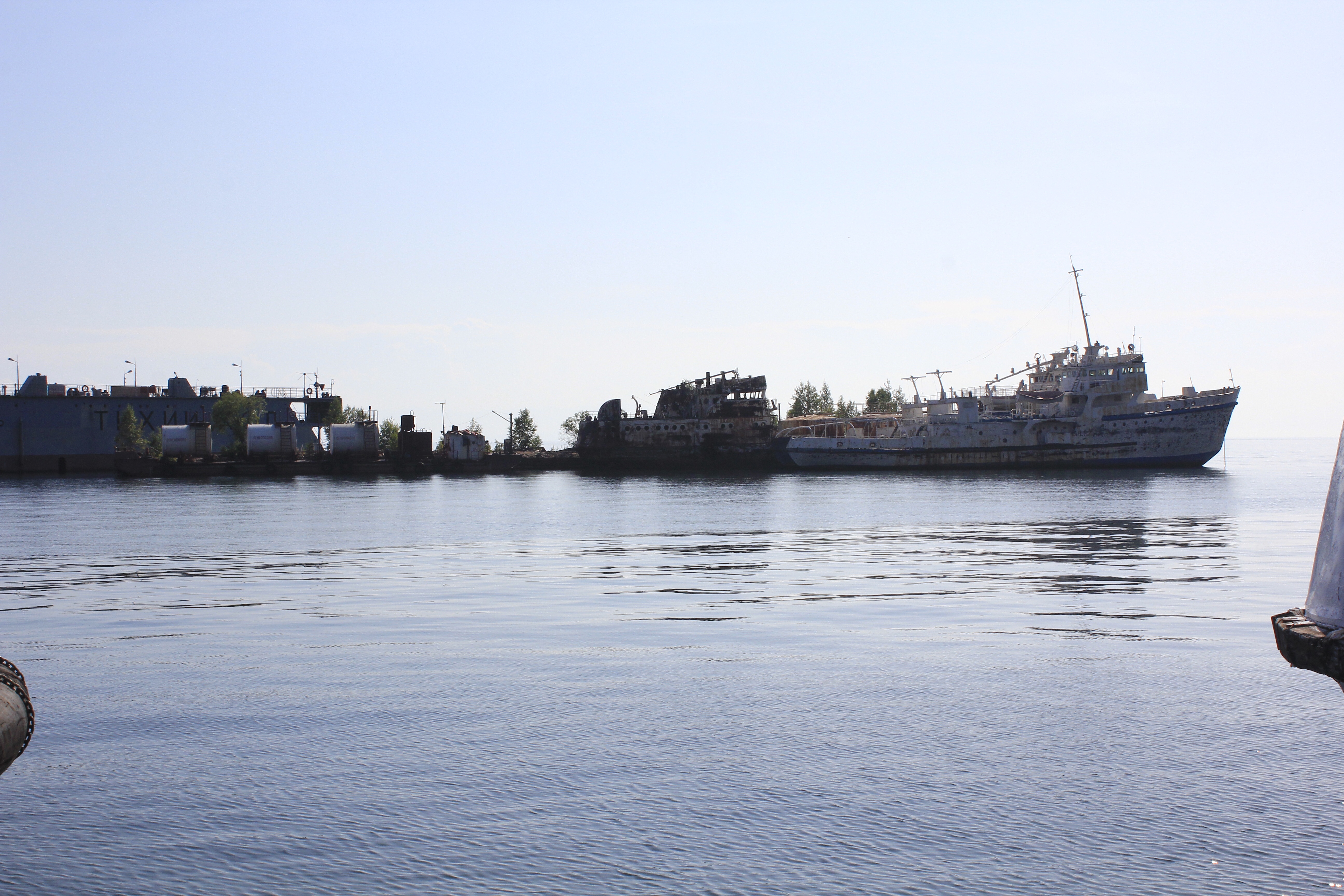 Port Baikal, ehemals Start des Trajekts über den See und Ausgangspunkt der Circum-Baikal-Bahn, hat seine besten Tage schon gesehen. Der Bahnhof ist zwar hübsche renoviert, Museum und Restaurant waren aber leider geschlossen. Der Rest des Ortes sind verstreute Gebäude, Container und Schifswracks.