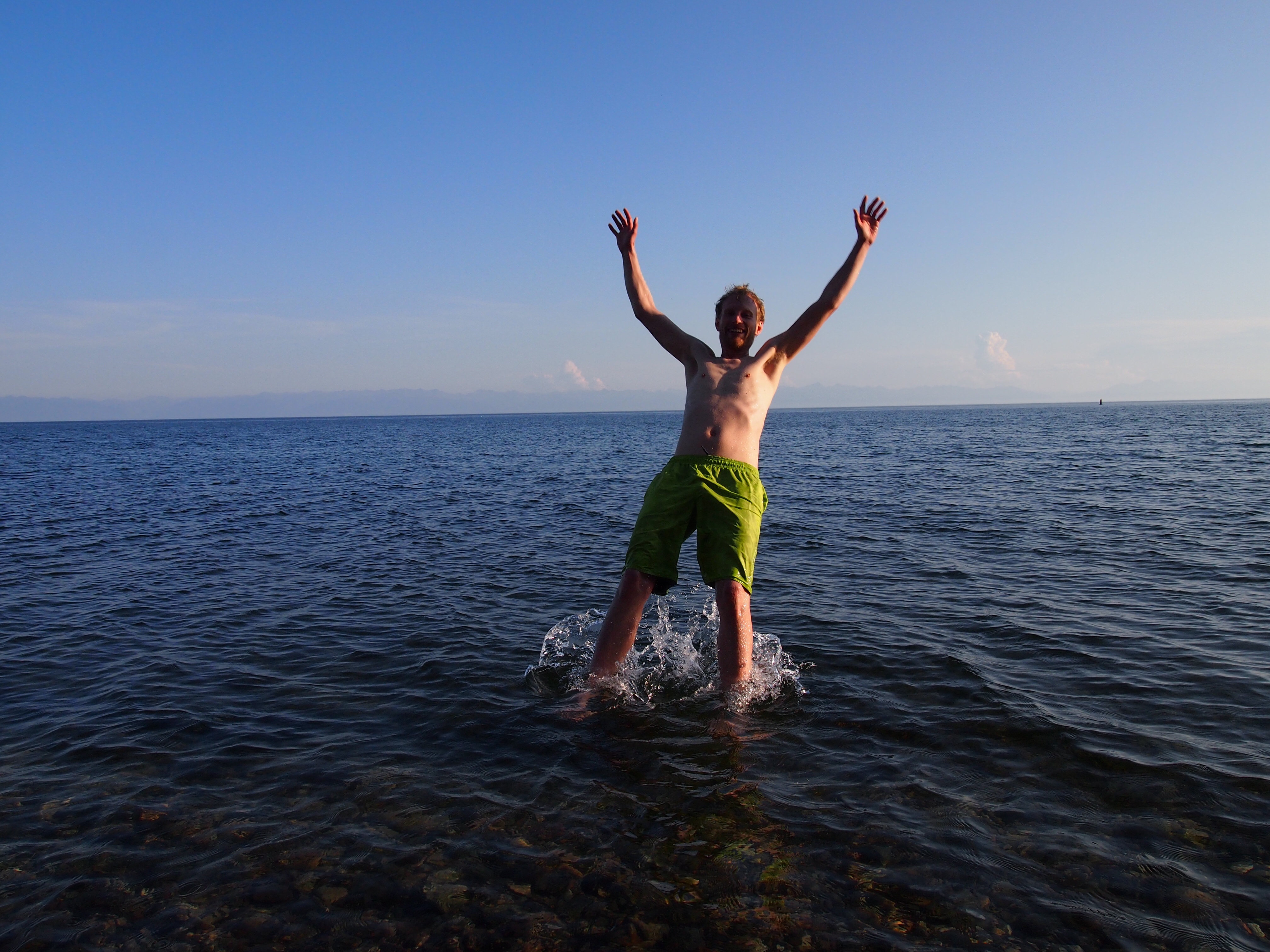 Da Port Baikal ja nicht so war, nahmen wir die (dieses mal reguläre) Fähre zurück nach Listwijanka und machten uns auf den Weg zum Strand. Dabei mussten wir einmal durch den ganzen Ort und mussten feststellen, dass diese Ort ein reiner Touristenort ist. Allerorts wurden Bootsausflüge angepriesen und Restaurant reiht sich an Imbiss an Hotel an Souvenirladen. Im Restaurant heute Abend waren zeitweise auch alle Tische mit Deutschen belegt 😀